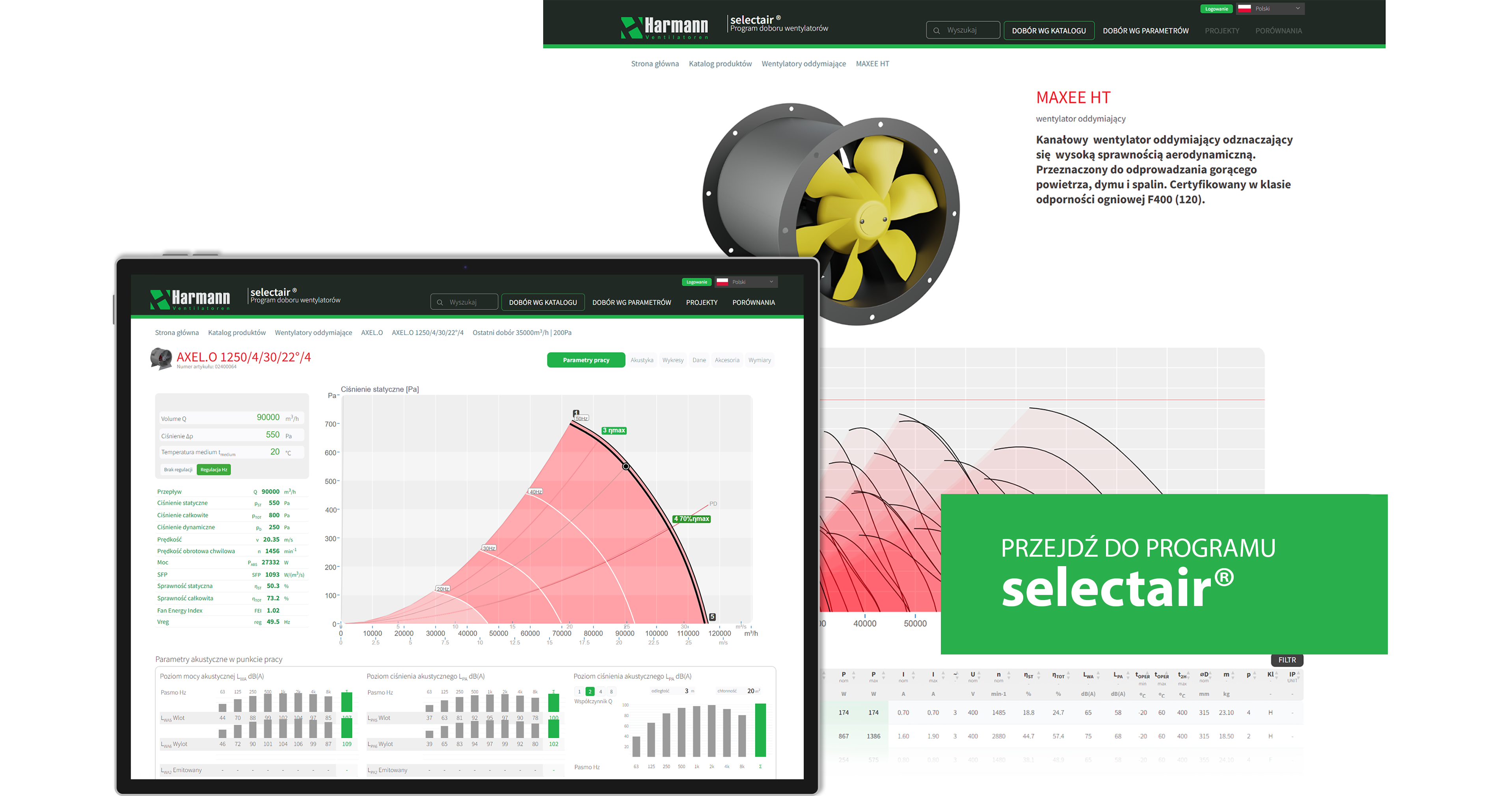 interaktywny dobór wentylatorów na podstawie zadanych parametrów, widok katalogowy wszystkich urządzeń,